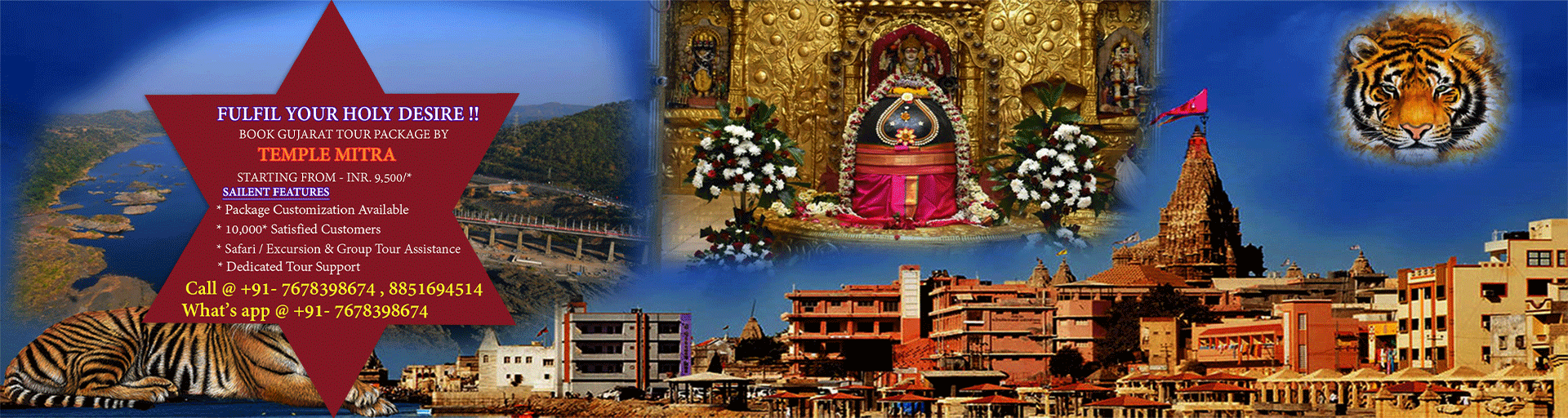 Gujarat is a state on the western coast of India. It is the fifth-largest state in India by area and the ninth largest state by population. Gujarat got its name from the Sanskrit word ' Gurjaradesa', meaning the ' Land of Gurjaras', who ruled Gujarat in the 8th and 9th centuries CE. Gujarat shares borders with Rajasthan ( To the North East), Dadra and Nagar Haveli & Daman and Diu ( To the South ), Maharashtra (To the South East) and Madhya Pradesh ( To the East), and the Arabian Sea ( To the West). The state is famous for its heritage sites of the ancient Indus Valley Civilisation such as Lothal, Dholavira, and Gola Dhoro. Gujarat is a proud tourist hotspot due to its rich historical, wildlife, and pilgrimage impact. The father of the Nation, Mahatma Gandhi & the Iron Man Sardar Patel was born in Gujarat. The ancient Dwarka City , Somnath Temple, Akshardham Temple, Ambaji Temple, Girnar Mountain, Nishkalank Mahadev, Palitana Shatrunjay Hill Temples are places of pilgrimage whereas the Sasan Gir National Park is a major attraction for wildlife lovers. The world's largest statue i.e. The statue of Unity also lies in Gujarat. Rann of Kutch attracts thousands of travelers every year. Templemitra Provides Various types of Packages - Gujarat tour package, Saurashtra tour packages, Panch Dwarka tour, Gujarat tour package for 4 days, gujarat jyotirlinga tour package, dwarka trip package, 4 days trip in gujarat, mumbai to dwarka and somnath trip, gujarat tours and travels packages, gujarat darshan tour, gujarat tours and travels,Dwarka Somnath tour,Gujarat holiday packages , Gujarat tour, gujarat tour plan, dwarka somnath tour package from ahmedabad, Ahmedabad tour package,complete gujarat tour packages,Panch Dwarka tour .